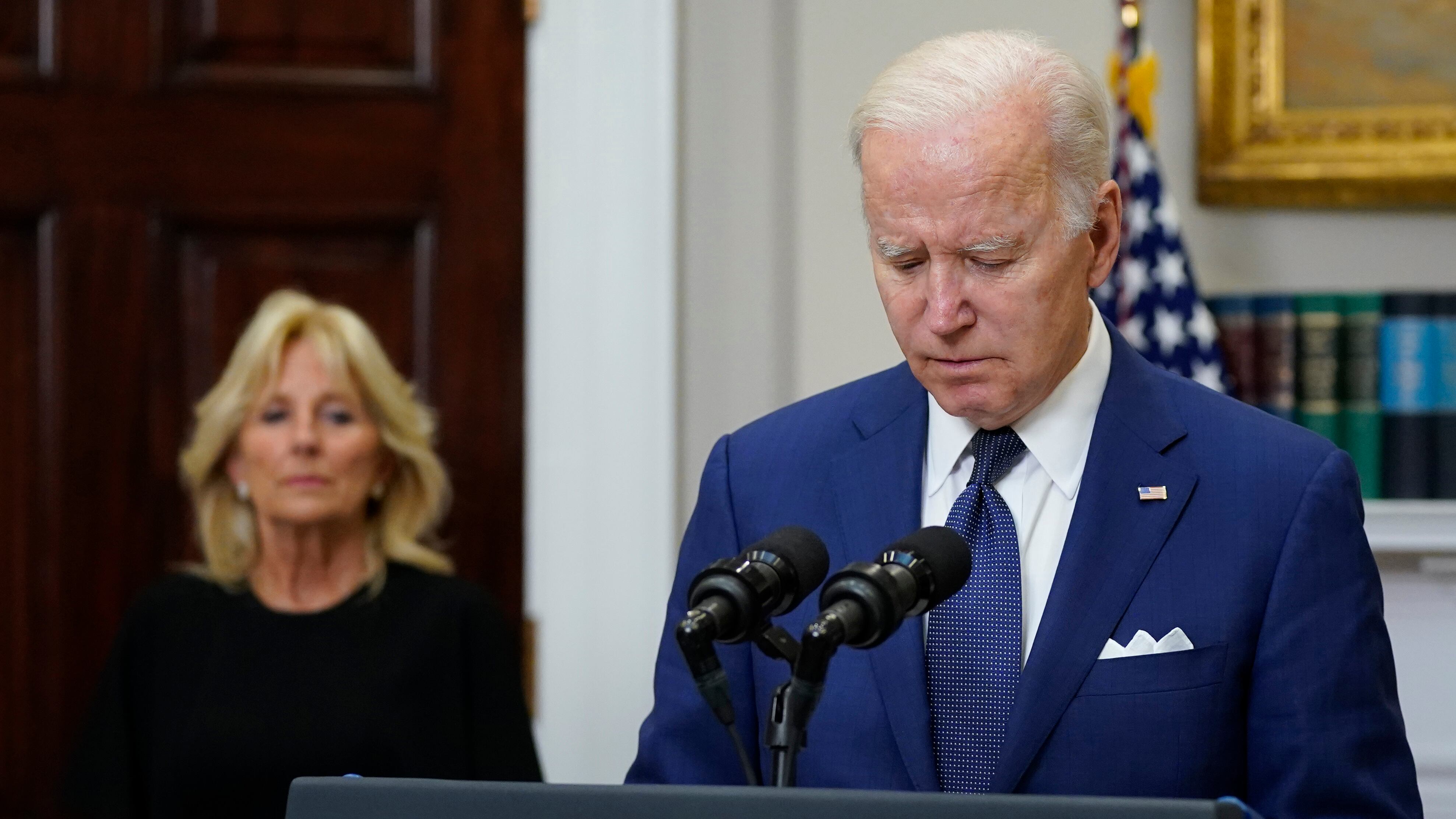 Con la primera dama Jill Biden a su lado en la Sala Roosevelt, Biden añadió: “Estoy harto. Tenemos que actuar”.