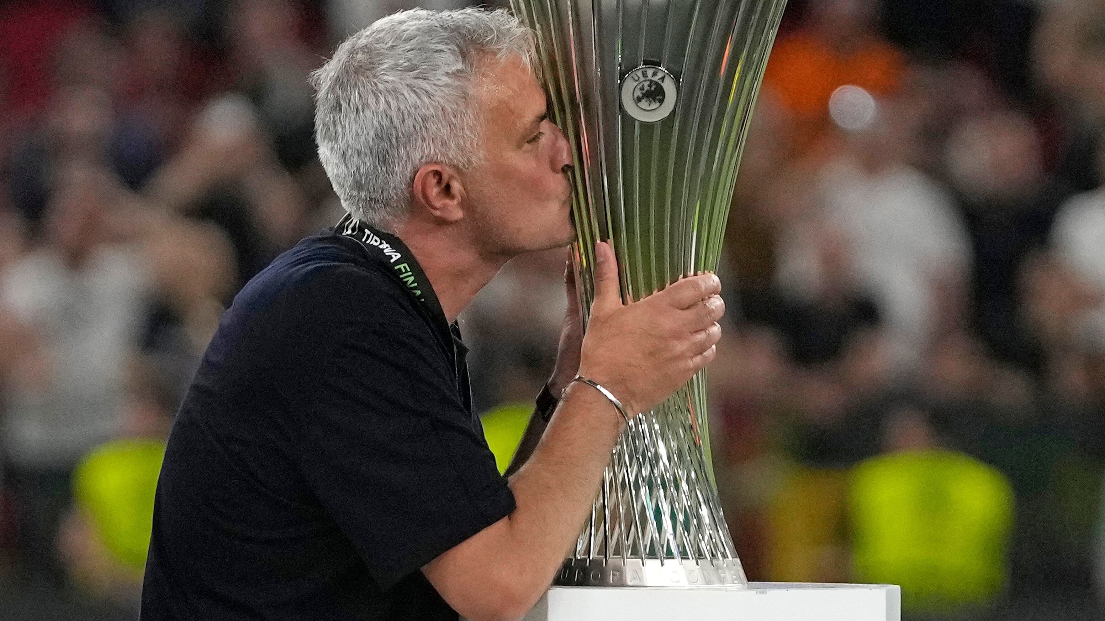El técnico portugués amplió su marca perfecta en finales europeas a cinco títulos al llevar a la Roma a alzar el trofeo de la primera edición de la Liga Conferencia.