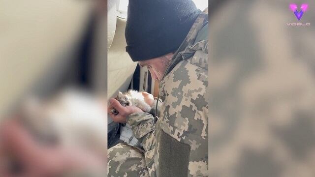 La directora y actriz Viktoriia Bilan-Rashcuk, de 43 años, de Kiev (Ucrania), filmó a un soldado ucraniano mientras rescataba a un gatito que había sido abandonado durante la guerra.