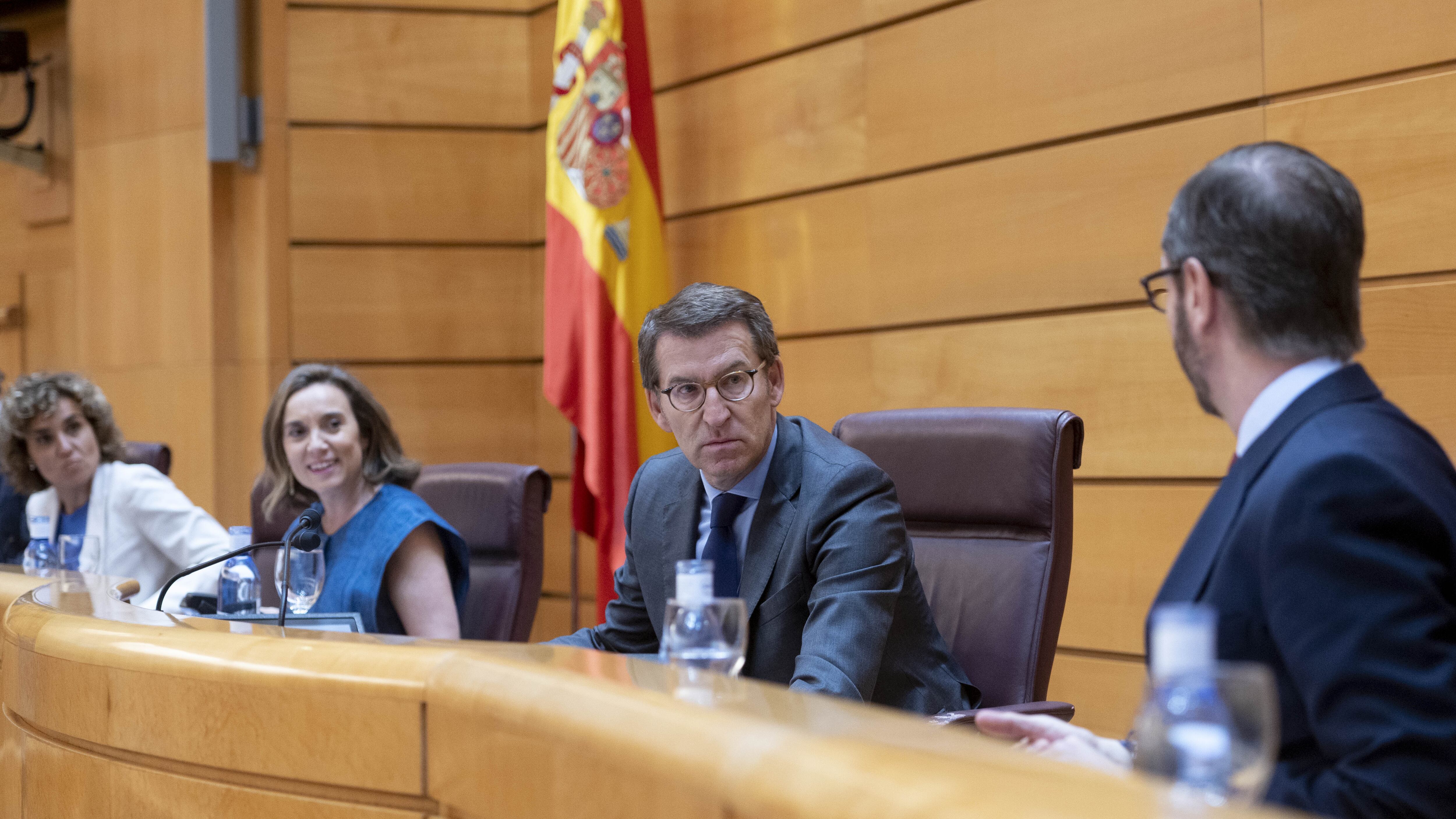 Así se ha pronunciado ante sus diputados, senadores y eurodiputados en el hemiciclo del Senado, una reunión de la plenaria del Grupo Popular para fijar las "prioridades de esta nueva etapa" que se produce dos días después de que haya tomado posesión de su escaño en el Senado, donde ha instalado además su despacho de jefe de la oposición