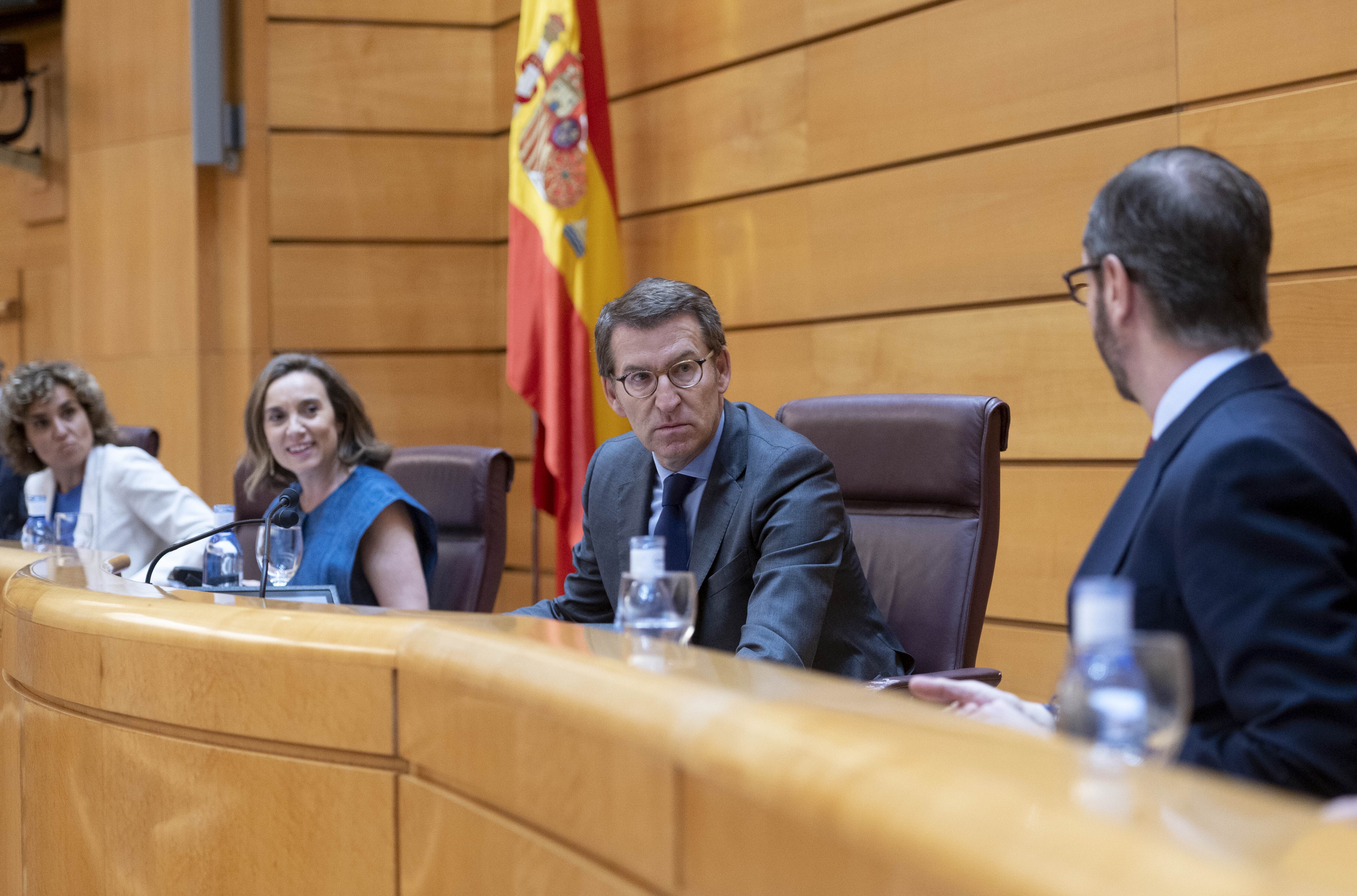 Así se ha pronunciado ante sus diputados, senadores y eurodiputados en el hemiciclo del Senado, una reunión de la plenaria del Grupo Popular para fijar las "prioridades de esta nueva etapa" que se produce dos días después de que haya tomado posesión de su escaño en el Senado, donde ha instalado además su despacho de jefe de la oposición