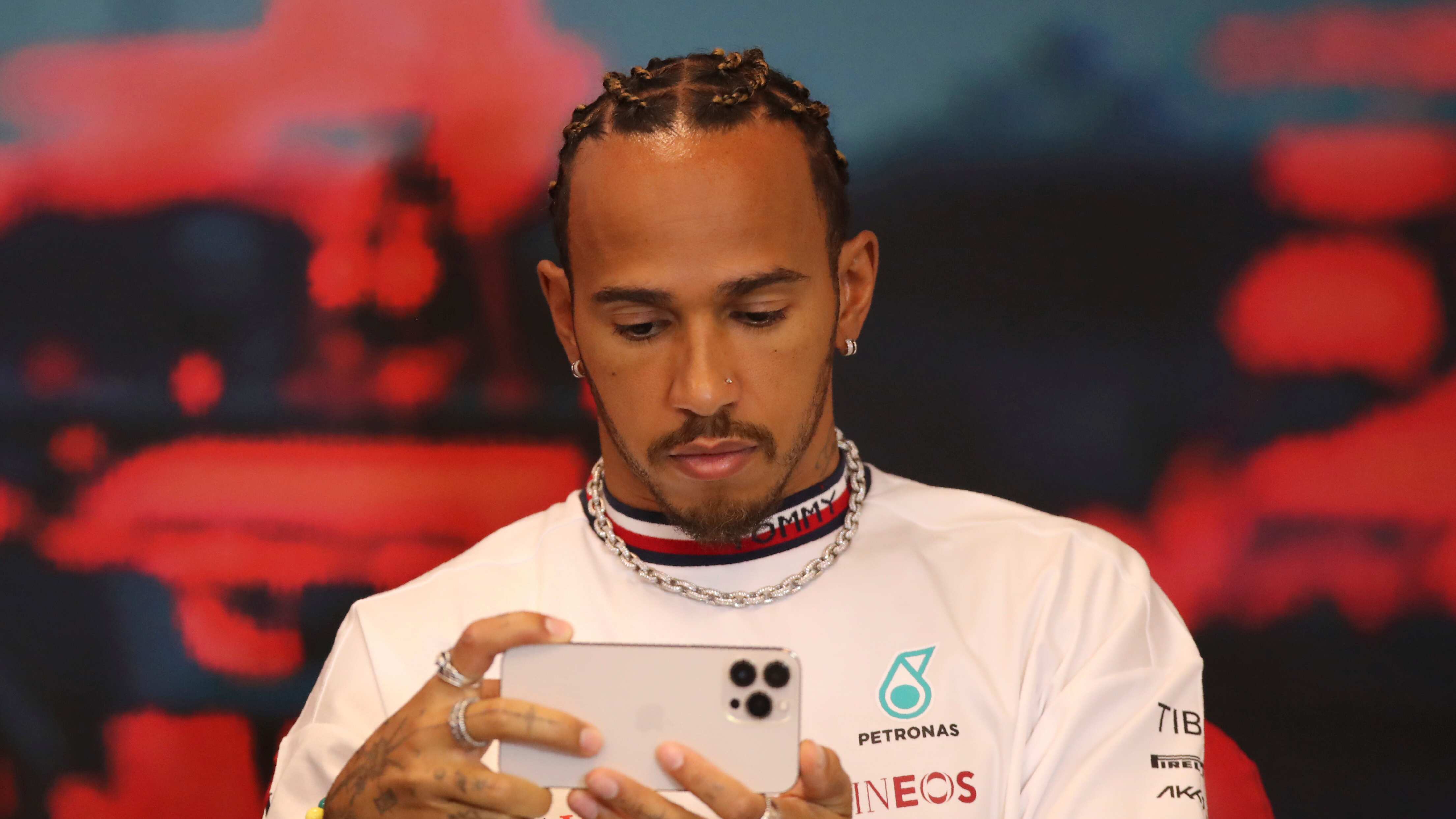 Hamilton protestó por la represión de la FIA contra las perforaciones corporales en Miami. Llegó al paddock con al menos cuatro collares apilados y luego fue visto con al menos tres relojes y cuatro anillos en cada mano, junto con sus aretes y su aro en la nariz.