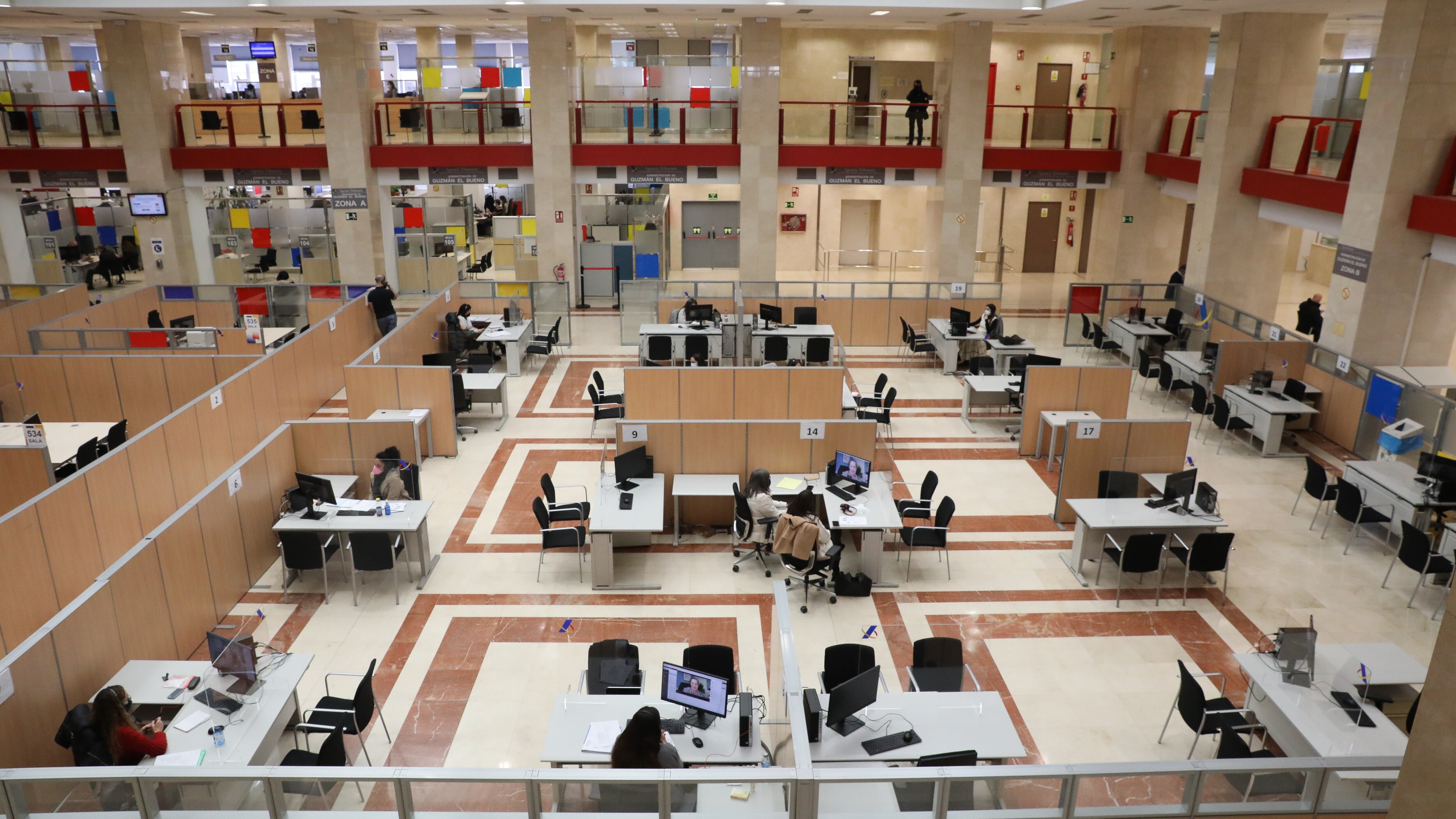 Archivo - Varios empleados trabajan en una oficina de la Agencia Tributaria un día antes de que dé comienzo el inicio por internet de la Campaña de la Renta 2021, en una oficina de la Agencia Tributaria, a 5 de abril de 2022, en Madrid (España). La Ca Marta Fernández Jara - Europa Press - Archivo