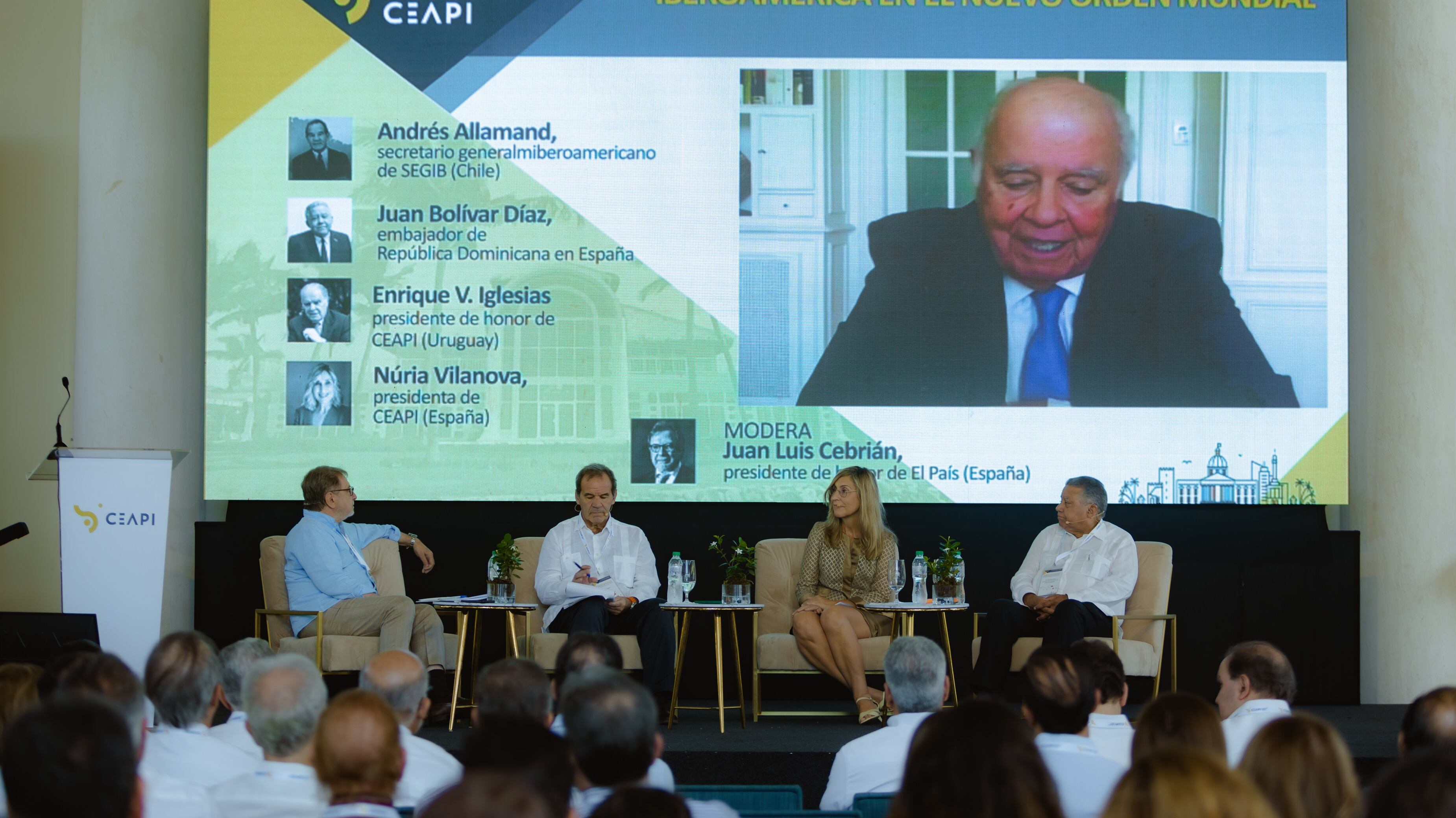 Bajo la moderación de Núria Vilanova, personalidades como Enrique V. Iglesias, presidente de honor de Ceapi; Andrés Allamand, secretario general iberoamericano; Juan Bolívar Díaz, embajador de República Dominicana en España y Juan Luis Cebrián, presidente de honor de El País, han analizado en un primer panel el papel de Iberoamérica en el escenario mundial actual.