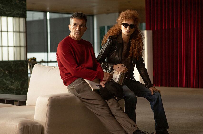 “Fue un placer y sobre todo en un mundo de comedia, aunque es una película reflexiva y compleja en el fondo”, dijo Banderas. “Verla componer un personaje, un personaje que no tiene nada que ver con ella, que se sale de lo que ella es, fue muy bonito”.
