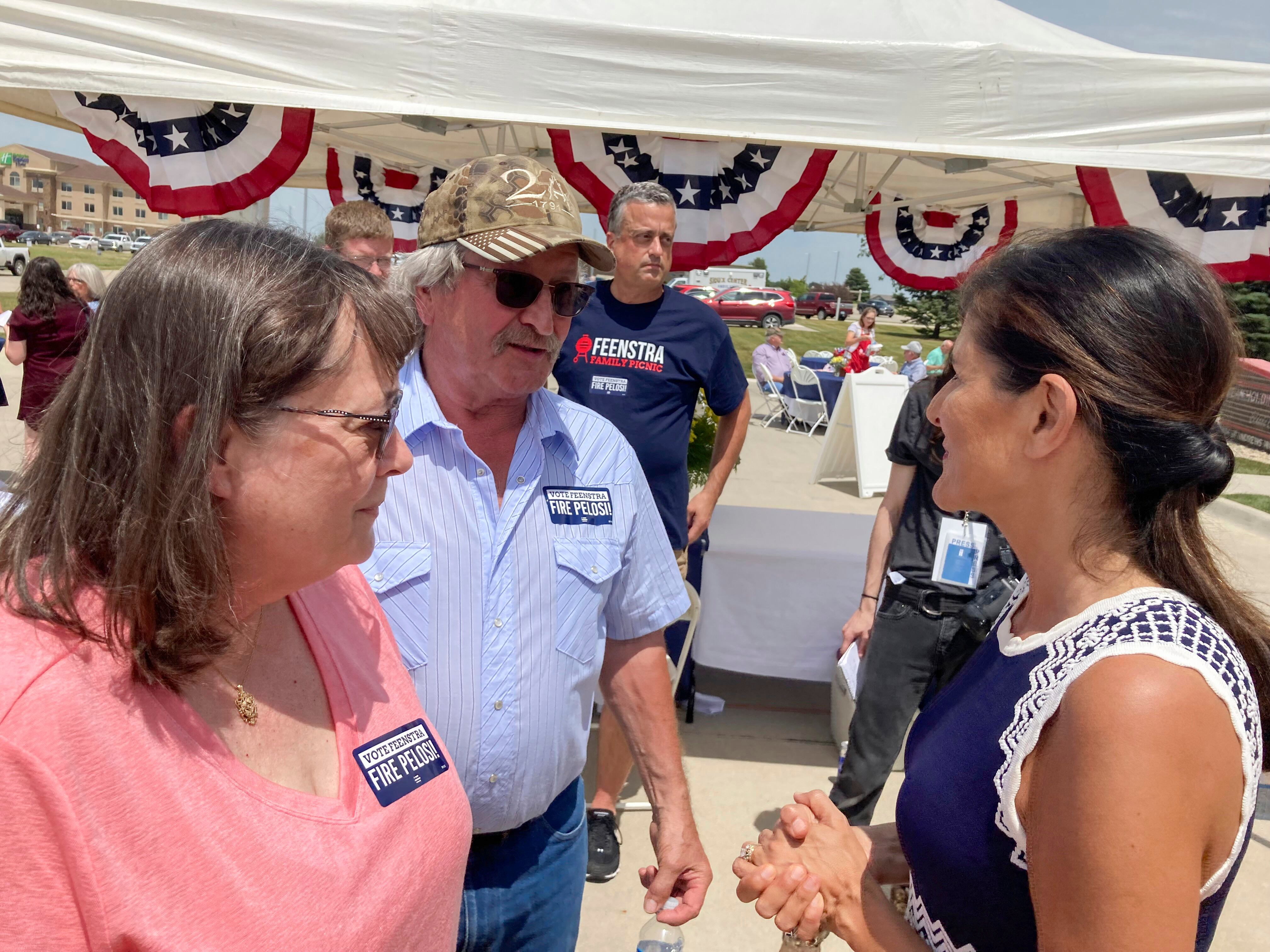 Nikki Haley, quien fue embajadora del gobierno de Trump ante las Naciones Unidas, atrajo a unos 350 activistas conservadoras a un asado para recaudar fondos el jueves en Sioux County, donde Trump obtuvo el 82% de los votos en el 2020.