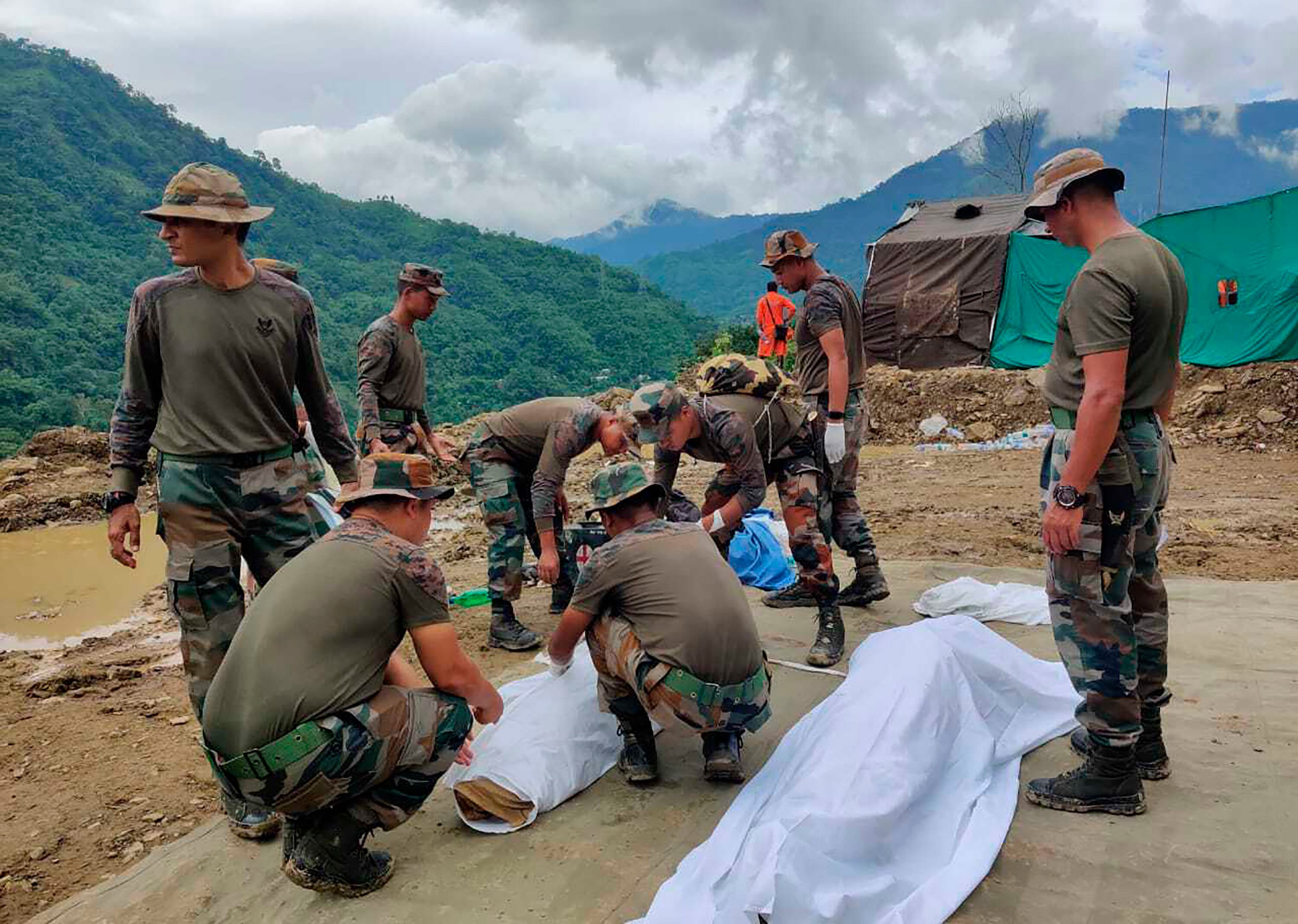 Trece soldados y cinco civiles han sido rescatados de los escombros de la estación de ferrocarril, los alojamientos residenciales del personal y otras infraestructuras que estaban bajo construcción, completamente arrasadas, dijo Kavidayal. Las lluvias continuas durante las últimas tres semanas han causado estragos en el noreste de la India —ocho estados y 45 millones de habitantes— y la vecina Bangladesh.