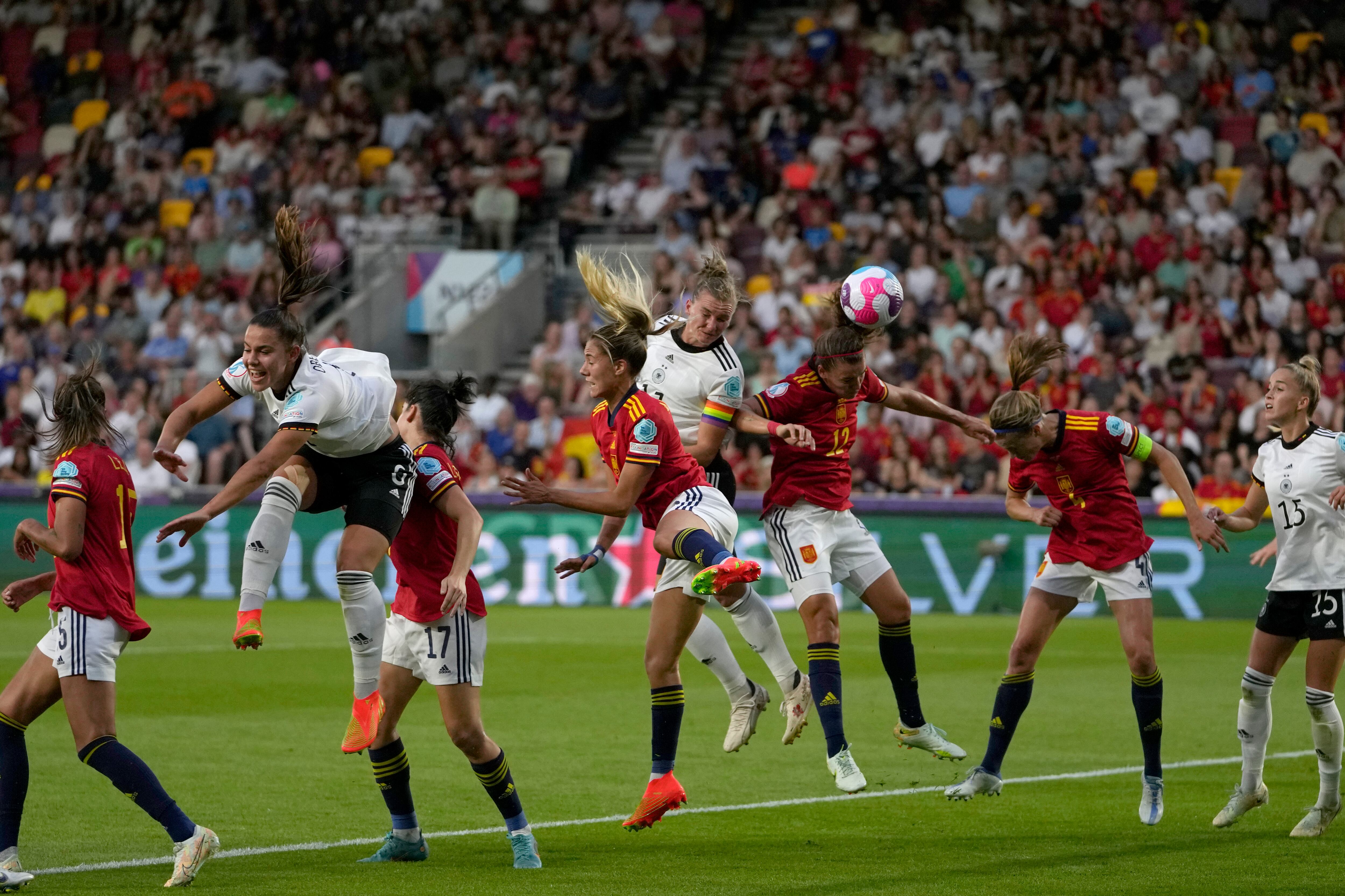 Alemania puso fin a la racha de 24 partidos sin perder de España para avanzar a los cuartos de final de la Eurocopa Femenina con la victoria 2-0 el martes.