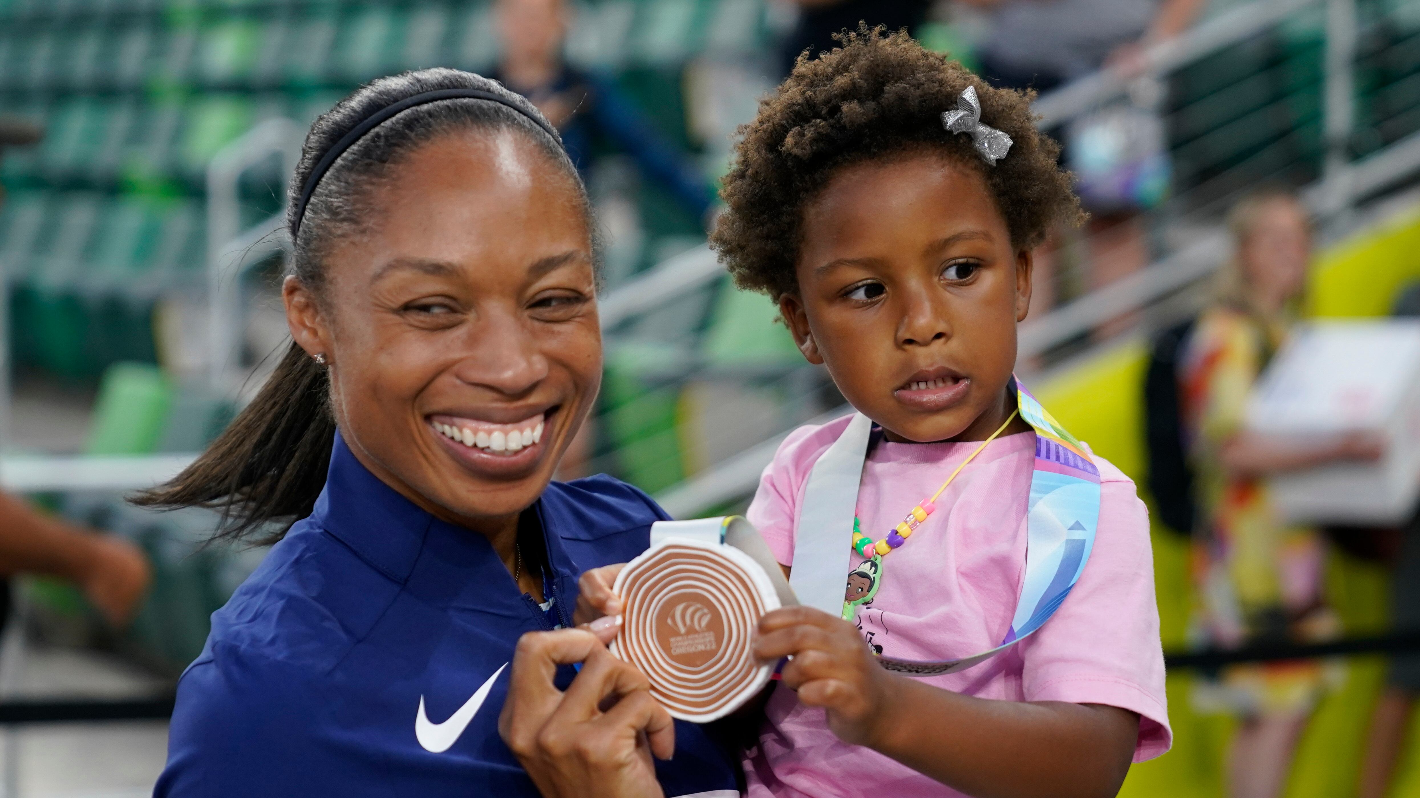 EUGENE, Oregon, EE.UU. (AP) — Allyson Felix se embolsó su 19na y última medalla en los Mundiales el viernes, un bronce al correr con la segunda posta en el relevo mixto 4x400, que bajó el telón en la ilustre carrera de la leyenda de 36 años.