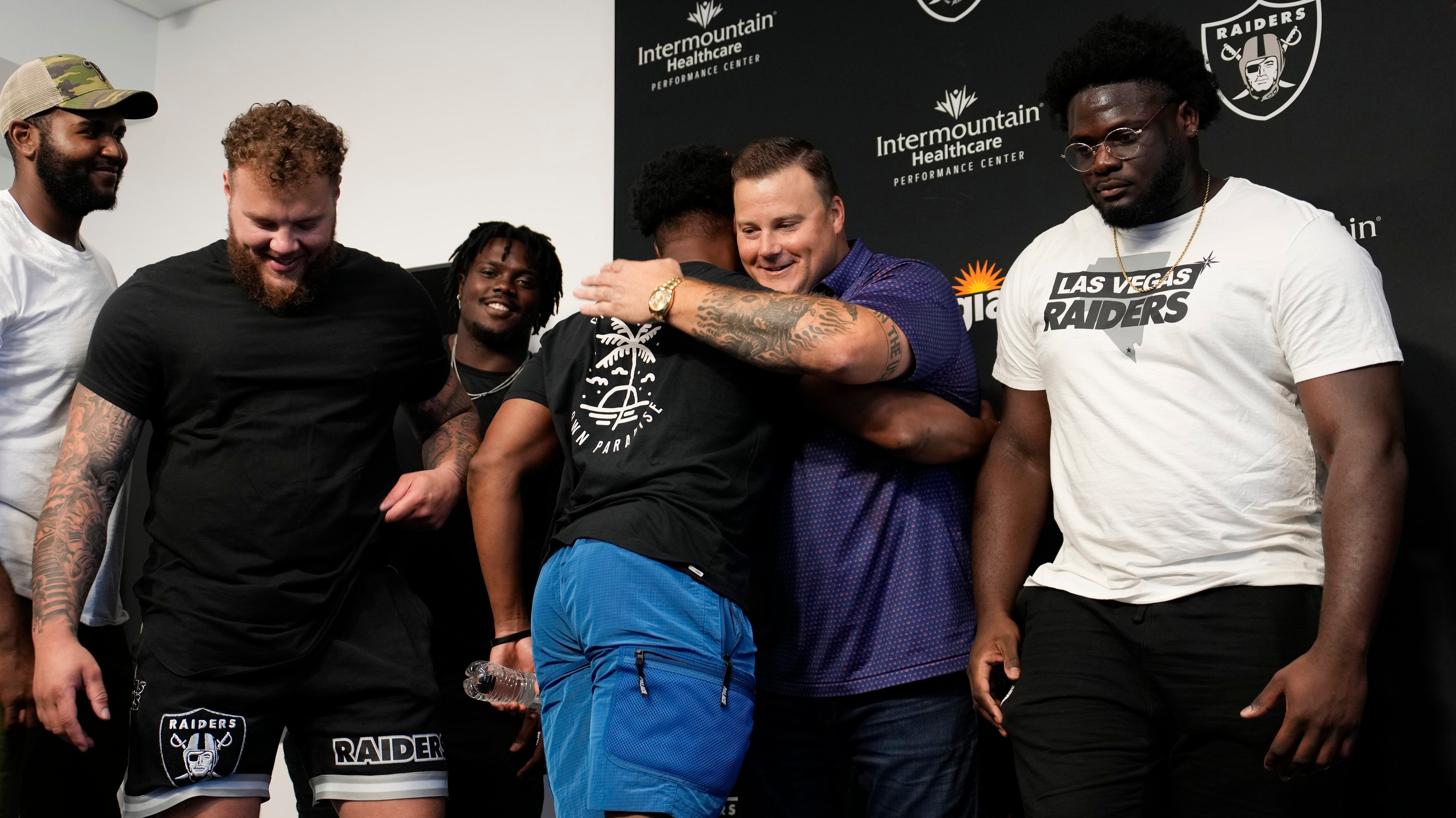 Integrantes del equipo, incluidos varios linieros ofensivos, así como su agente, miembros de su familia y el propietario del equipo, Mark Davis, le aplaudieron cuando entró en la sala donde se despidió.