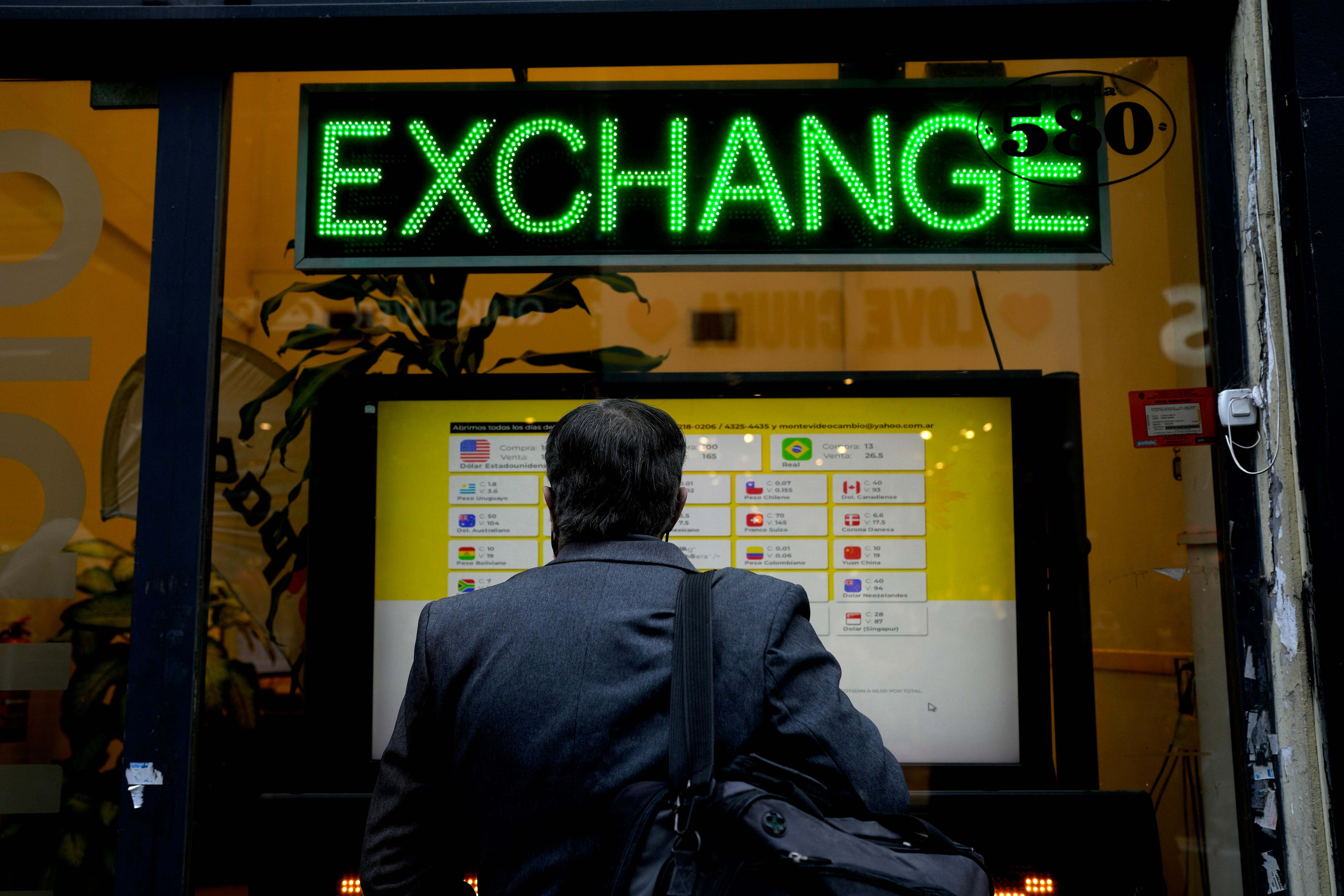 Un hombre mira las tasas en una casa de cambio en Buenos Aires, Argentina, el jueves 14 de julio de 2022. (AP Foto/Natacha Pisarenko) AP (Natacha Pisarenko/AP)