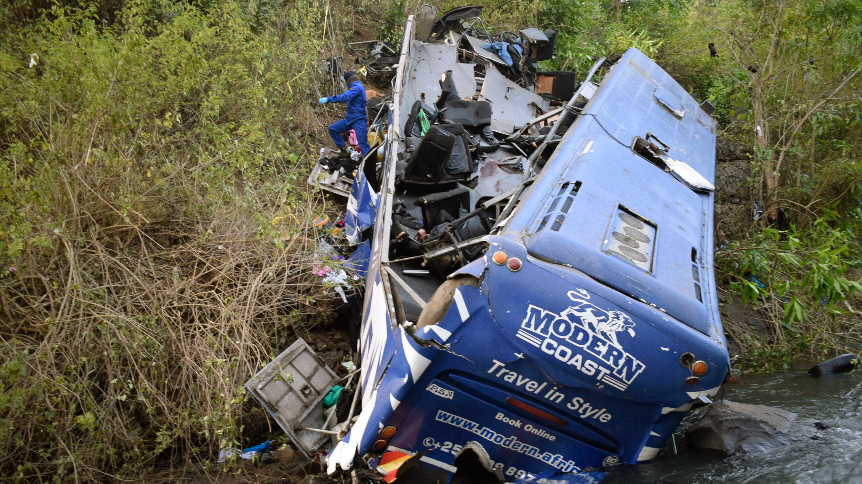 El autobús de pasajeros llevaba a un número desconocido de personas el domingo, cuando cayó de un puente hacía un río en una autopista de Meru hacia la capital, Nairobi.