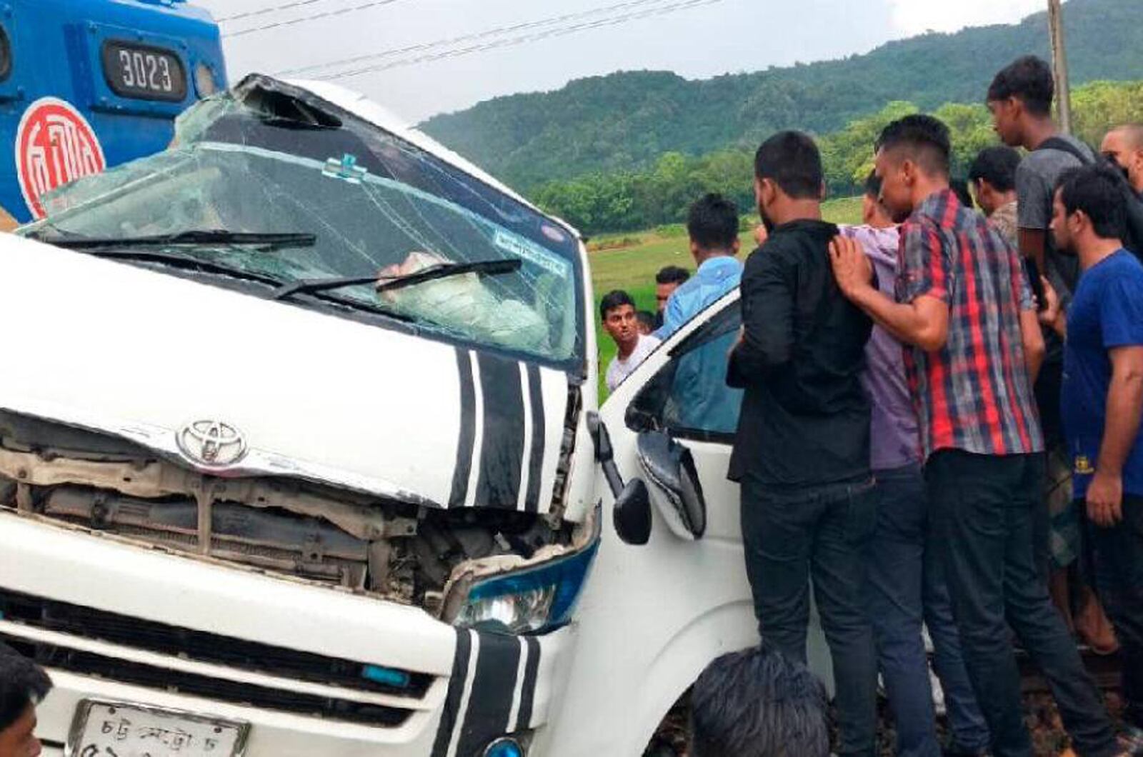 Un tren con dirección a la meridional Chittagong embistió a un microbús en un cruce, resultando en la fatal muerte de once personas