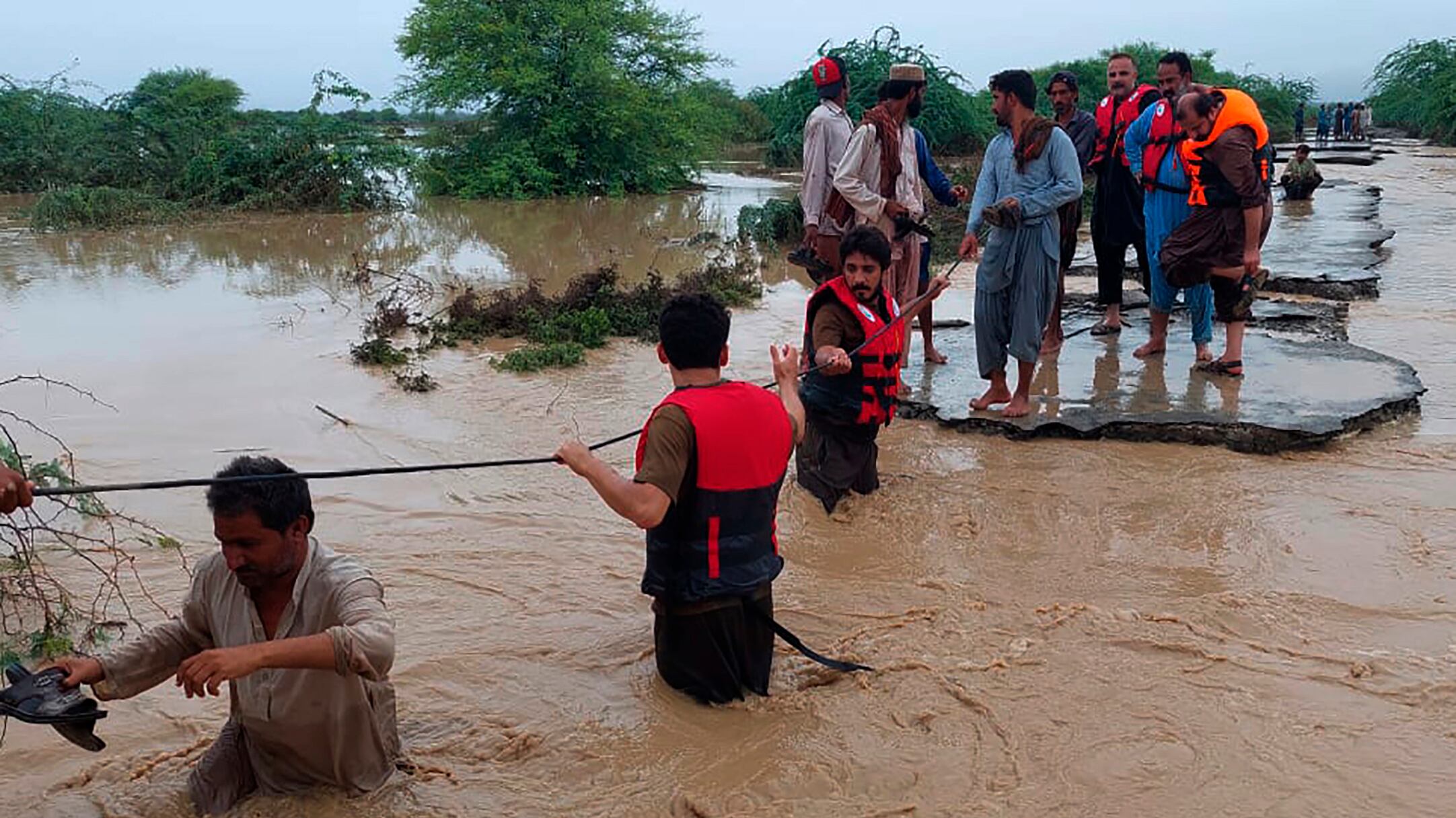 Los rescatistas respaldados por el ejército han evacuado a miles de personas varadas, entre ellas mujeres y niños. Se esperan más lluvias esta semana en Pakistán, donde la temporada del monzón va de julio a septiembre.