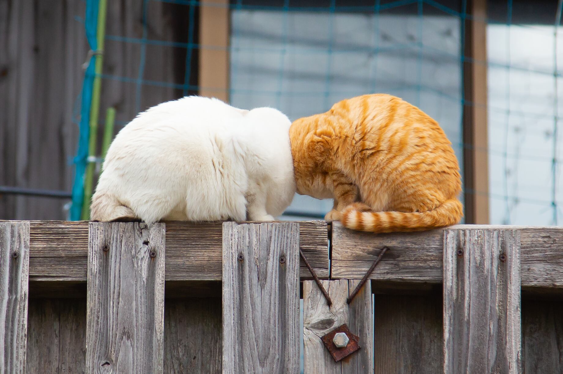 Esta brillante foto de dos gatos sentados en una valla, mejilla con mejilla o cuello con cuello, se convirtió en la ganadora absoluta del concurso. / Kenichi Morinaga.