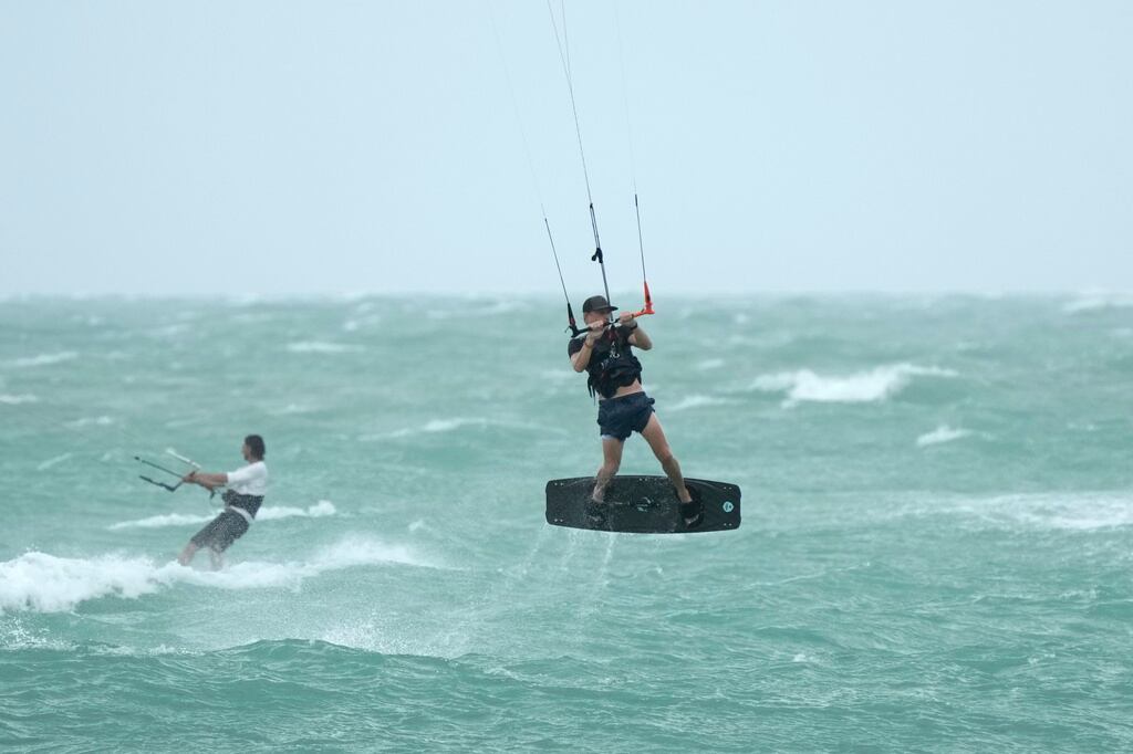En Midtown y Phipps Ocean Park también aprovecharon el clima para practicar deportes acuáticos. Saul Escobar, un surfista de Wellington, habló con Daily News mientras se preparaba para hacer kite surf: “El viento es de 20 a 25 millas por hora justo ahora, es perfecto para hacer kite surf.”