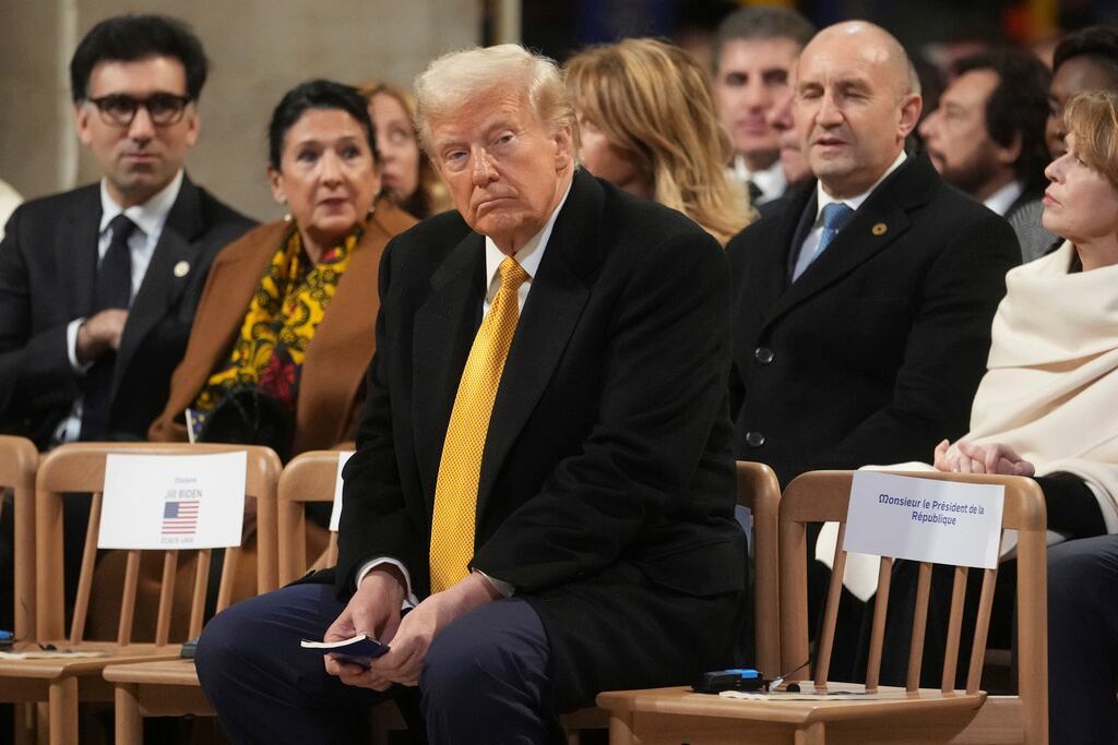 Donald Trump en la Catedral de Notre Dame para la ceremonia de reapertura, el sábado 7 de diciembre, en París. (Thibault Camus/AP)